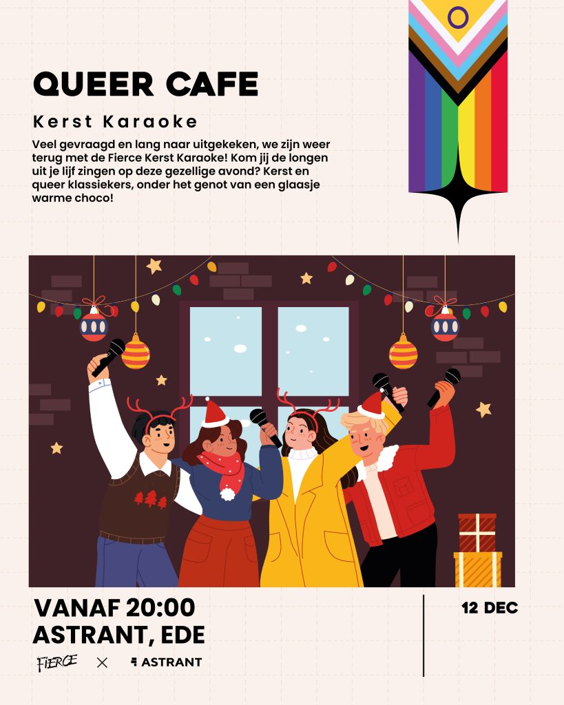 Veel gevraagd en lang naar uitgekeken, we zijn weer terug met de Fierce! Kerst Karaoke. Kom jij de longen uit je lijf zingen op deze gezellige avond? Of kijk je liever toe hoe anderen het podium pakken? Kerst en queer klassiekers, onder het genot van een glaasje warme choco! In de tuin steken we een lekker warm vuurtje aan, om marshmallows boven te roosteren. Sluit jij met ons het jaar gezellig af?