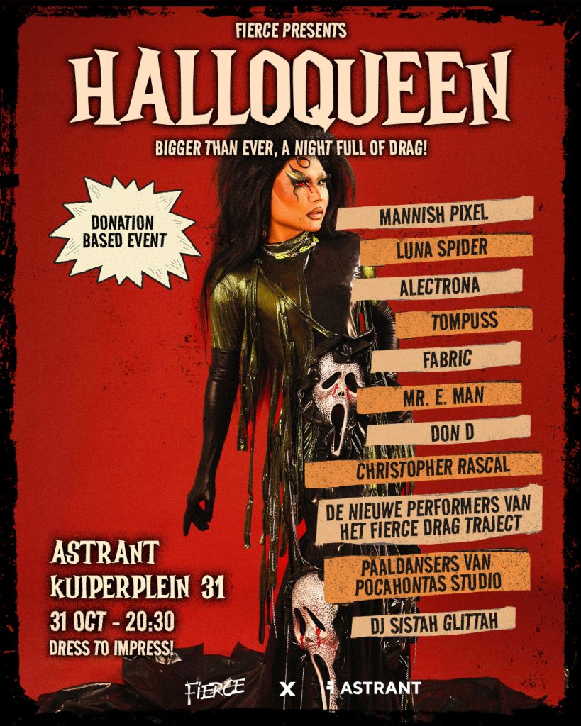 We’re back Witchesss! Genoten van de Heideweek Drag Night? Maak je klaar voor HalloQueen, een drag show uitpuilend met verrassingen! Vergaap je dit jaar niet alleen aan professionele kings, queens en andere drag performers, maar ook aan paaldansers, moedig de nieuwe drags aan van het Fierce Drag Traject en laat je gaan op de songs van DJ Sistah Glittah. Hét straightfriendly queerfeest van Ede, mis dit niet!