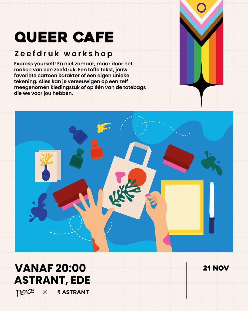 We hebben weer een super toffe expressieve workshop voor jullie klaar staan die je niet wil missen. Samen met zeebra gaan we zeefdrukken! Je mag zelf iets meenemen om op te drukken, bijvoorbeeld kleding. Maar we hebben ook een aantal totebags waarvan je er eentje mag gebruiken. Zet een toffe tekst, jouw favoriete cartoon karakter of een eigen unieke tekening op de stof en laat zien wie jij bent!